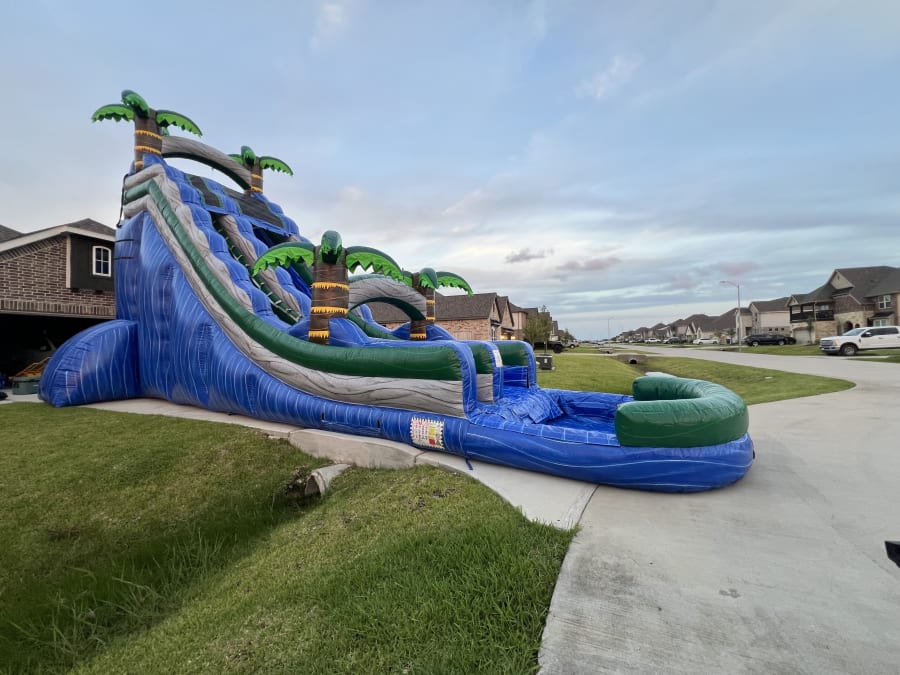 Looking to turn your next event into an unforgettable adventure? The 22' TROPICAL Water Slide is the ultimate centerpiece for any celebration! This vibrant, towering waterslide isn’t just tall—it’s a stunning 22 feet of tropical fun that will have kids and adults lining up for more. With our reliable waterslide rental 22' TROPICAL Water Slide in Mont Belvieu/Baytown and surrounding areas, you can transform your backyard into a tropical paradise in no time!